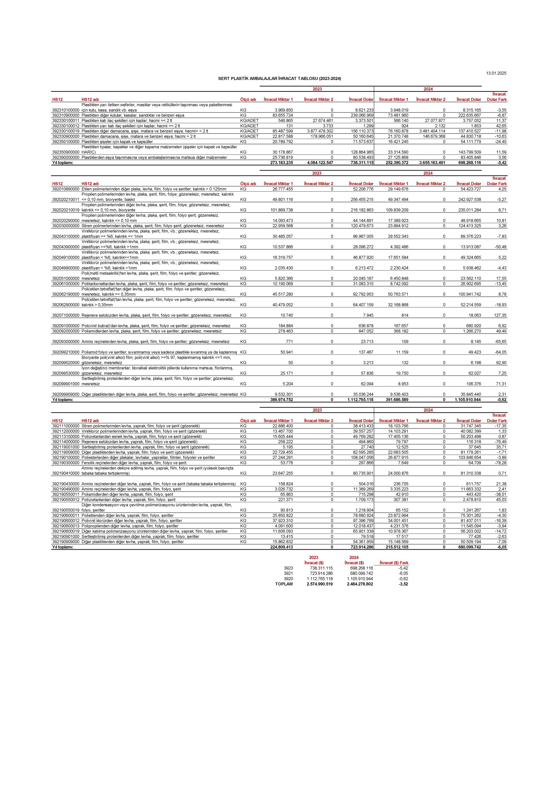Sert Plastik Ambalaj İhracat Rakamları (2023 – 2024)